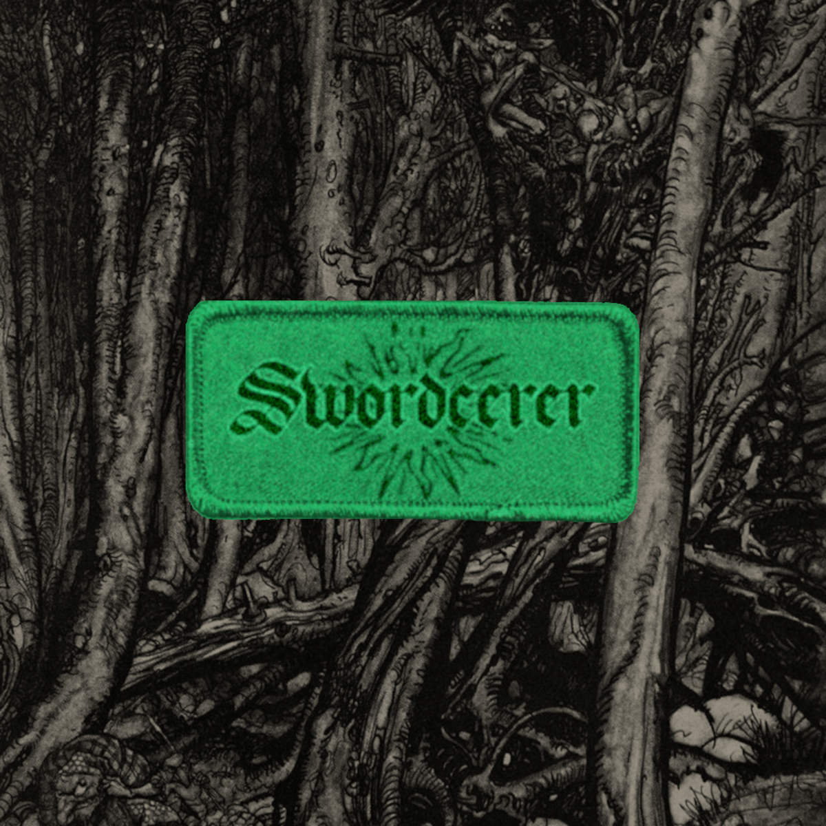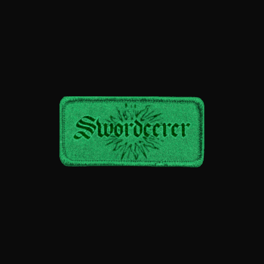 a moss green patch to color and adorn one's vestments, straight from the satchel.